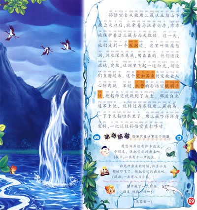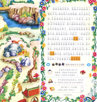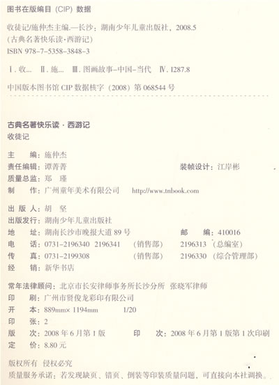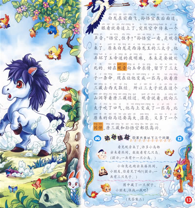 《西游记》是家喻户晓的古代名著,它以大胆的想象、奇特的视角,讲述了唐三藏师徒四人历尽艰辛去西天取经的故事,吸引了一代又一牮孩子。我们节选了《西游记》中流传最为广泛的八个故事,改编成卡通卡环画,让孩子们在轻轻松松的读图识字中感受到名著的魅力。