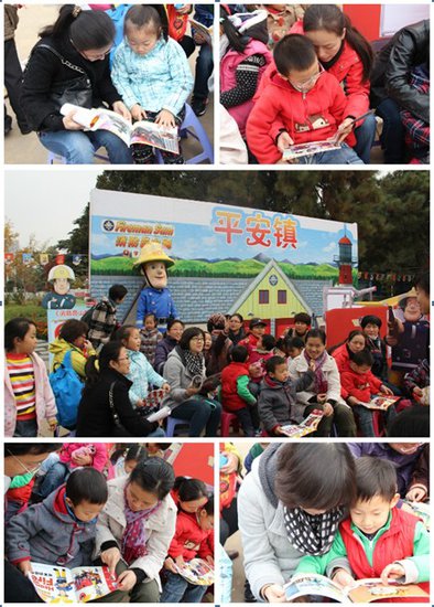 早上九点,中国儿童中心布置一新,小彩旗迎风招展。在巨大的“平安镇”背板前是为小朋友们准备的消防安全主题互动墙,山姆叔叔和他的战友们以及消防车均来到现场以供小朋友们合影留念,活动现场气氛十分热烈,在家长带领下的小朋友们,非常喜爱消防员山姆主题互动墙,争相与之合照。随后进行的消防员山姆读书会更是吸引了诸多家长和小朋友们驻足,活动现场主持人邀请在场的十多对家长和小朋友一起阅读消防员山姆系列图书,通过阅读一个个精彩的安全小故事学习更多消防安全知识,让小朋友们可以在开心的同时还可以学习到知识,达到寓教于乐的目的。在互动环节,主持人还向小朋友们提出了一些安全小问题,通过阅读图书就可以轻松作答,同时活动组织者还为答对的小朋友准备了精美的小礼品。活动最后,山姆叔叔人偶也亲自来到现场,和小朋友们合影做游戏,活动最终在热烈欢快的气氛中落下帷幕。
