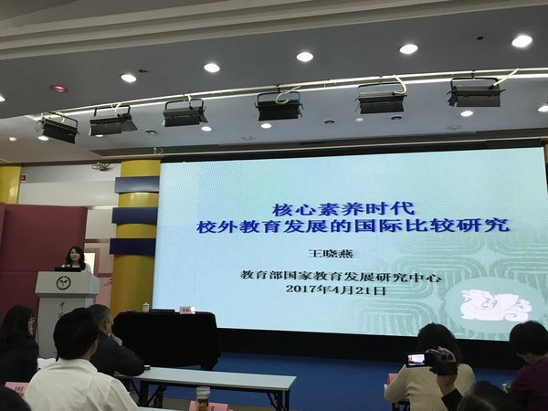 2017年4月21日至22日,中国家庭教育学会少年儿童校外教育专业委员会(以下简称“校外专委会”)主办的校外教育发展研讨活动在北京举行。中国青少年宫协会会长李文革,中国家庭教育学会常务副秘书长吴新平,校外专委会副理事长、中国儿童中心主任苑立新,清华大学原副校长谢维和,上海市校外教育协会会长卢晓明等出席活动开幕式。来自全国各地130多名校外教育主管部门领导、校外活动场所负责人、管理人员和骨干教师参加了此次研讨活动。