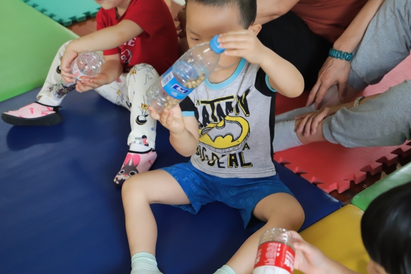 陈鹤琴先生说:“ 听觉乃知识之门 ” ,耳朵是音乐的门户,是表达音乐,感受音乐的生理基 础。幼儿听觉器官的发育要早于其他器官,当幼儿还不会语言表达,他已经能听到声音和乐音,并能感受到音乐作品里包含的情感,比如幼儿听到欢快的乐曲就开心、会跟着欢快的音乐 做一些动作。听到温柔的音乐就会安静下来。 本次活动是音乐活动,早期儿童发展部的老师利用生活材料去刺激幼儿的听觉,抓住了教育的契机,下面就让我们来看看本次的精彩活动吧! 点名活动跟之前的略有不同,这次的点名是通过“击鼓传花”,在宝宝能够大胆地做自我介绍的基础上,一方面刺激了宝宝的听觉,另一方面锻炼宝宝的反应能。宝宝们很喜欢“击鼓传花”的点名方式,都很积极地参与点名。 “小朋友们,我们怎样可以发出小雨的声音呢?”老师通过提问的方式激发宝宝的思考,老师用手指去轻轻地点地垫,从而提示宝宝,“那么大雨的声音是怎样的呢?”小朋友们举起了手,并用手去拍地垫,家长和宝宝相对而坐,大手对小手,大手指对小手指,一起用动作去表达音乐。哇!我们的宝宝好棒呀!大家一起听音乐,跟随音乐去模仿大雨和小雨的声音。通过刺激宝宝的听觉,引导宝宝用动作去表达音乐,初步感知乐曲的结构,培养宝宝对乐曲断句的听辨能力,进而体验音乐活动的乐趣! 接着,老师引入生活材料自制听声筒——豆子、大米和矿泉水瓶,家长宝宝把从家带来的豆子装进瓶子里,很快,每位宝宝手里都有一个自制听声筒——装着豆子或者大米的瓶子。摆动装着豆子的瓶子可以模仿大雨的声音,摆动装着大米的瓶子可以模仿小雨的声音。大家跟随音乐去摆动听声筒。 摆动听声筒可模仿大雨和小雨的声音,那么把瓶子慢慢地倾斜,瓶子里的大米从瓶子的一端慢慢地滑到到瓶子的另外一端,听起来像什么声音呢?“大海的声音”小朋友说。大家一起听《大海》的音乐,小朋友们以自己舒服的姿势去感受大海的声音。 在幼儿音乐教育中,首先应当培养幼儿的听觉, 在幼儿欣赏音乐时,会对节奏、音色,音高,力度等方面有一定的听辨能力,这就使幼儿在听觉方面有很好的提高和锻炼,引导幼儿用广阔的视角去探索和发现。听觉是可以培养的,乐感是可以建立起来的,关键在于成人要给予正确的引导和培养。在我们的平时的生活当中,我们可以和宝宝一起去自制小乐器,挑选合适的音乐和宝宝一起感受音乐中的节奏的强弱和曲势的变化。 早期儿童发展部将会继续推出更加丰富多彩的音乐活动,从多方面去培养宝宝的感知音乐的能力,让我们敬请期待! |