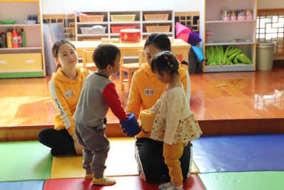 在这万物复苏,新绿满园的季节,早期儿童发展部迎来了今年春季亲子班的第一批平时班的宝宝。 平时班都是2.5-3岁的宝宝,这是他们走出家门,来到早期儿童发展部参加的第一次集体活动。这个年龄段的宝宝,大都还没有参加过集体活动,但他们已经有了同伴交往的愿望。他们思维活跃,语言表达能力在逐步增强。2-3岁也是儿童的秩序敏感期,针对这些特点,老师们精心安排了宝宝和家长的第一次亲子活动。 本次活动以“熟悉新环境”“认识新朋友”为主题,老师们设计了环环相扣的游戏活动。帮助宝宝们认识、熟悉环境,熟悉小伙伴与教师。在游戏中支持宝宝们的语言表达、思维能力及秩序感的发展。 游戏开始前,是欢快的热身环节:一起跳开场舞,让宝宝们的身体活动起来。在此环节,宝宝们能够自主跟随音乐,开心地舞动身体,从观察、熟悉别人的动作到模仿,在热身的同时,体验与其他人共舞的美妙感觉。 游戏一:迎春花朵朵开 这个游戏主要是增强家庭之间、宝宝之间的互动。锻炼宝宝的语言表达能力、表现力,以及与他人交往的能力。每个家庭是一朵迎春花,要求家长和宝宝提问“迎春花开几朵”,并根据教师的回答,快速组成相应的迎春花朵数。最后,两个家庭一组,组成2朵迎春花。请两位宝宝互相介绍,并记住对方的姓名、年龄,成为好朋友。通过游戏宝宝们逐步认识了更多的新朋友。 游戏二:魔法桶 老师请结成好朋友的宝宝到教师这里,向大家介绍自己的好朋友,如:要鼓励宝宝说出好朋友的姓名和年龄,介绍完之后,分别从魔术桶中摸出一张小卡片,并回到家长那里。卡片上是相应的水果图片,用于随后的分组。魔法桶的加入,大大提高了宝宝的兴趣和参与性。 游戏三:亲亲我的教师 利用宝宝们摸到的小卡片进行分组,并找到相应的教师。分别是:苹果组、梨子组和橘子组。每张小卡片都有相应的问题,老师请家长引导宝宝,向教师询问问题。这些问题都是根据宝宝的兴趣设置的。如“你叫什么名字?”“你最喜欢的水果是什么?”“你喜欢的玩具有哪些”等。结束之后,老师让各小组集中在一起,由宝宝们依次回答相应的问题,通过游戏,宝宝们认识了将要与他们天天相处的教师。 游戏四:送玩具们回家 这个游戏是为了培养宝宝的归位意识,培养他们的秩序感与规则意识。宝宝从区域中选择一个自己喜欢的玩具,玩一玩,家长也可以引导宝宝说一说玩具的颜色,怎么玩,从哪里拿的等。之后,请宝宝们将玩具送回家。 本次开班活动因其趣味性和丰富性,充分调动了宝宝参与活动的积极性,宝宝和家长的参与度都非常好,宝宝们快速熟悉了亲子班的环境,融入到生动有趣的游戏中,熟悉了亲子班的小伙伴与教师们。家长们都说:亲子活动中看到了宝宝们的另一面。在家中害羞的宝宝,在游戏中开心地互动;依赖性强的宝宝,在游戏中主动收拾玩具,这些都是宝宝们的进步。 “春种一粒粟,秋收万颗子”。教师与家长的陪伴就像是播撒在宝宝生命中的种子。必将在他们的未来点亮更多色彩。早期儿童发展部还将继续以儿童早期发展的特点为依据,设计更多趣味性强、易于在家庭中延伸的生活化游戏,陪伴宝宝们一起成长。 |