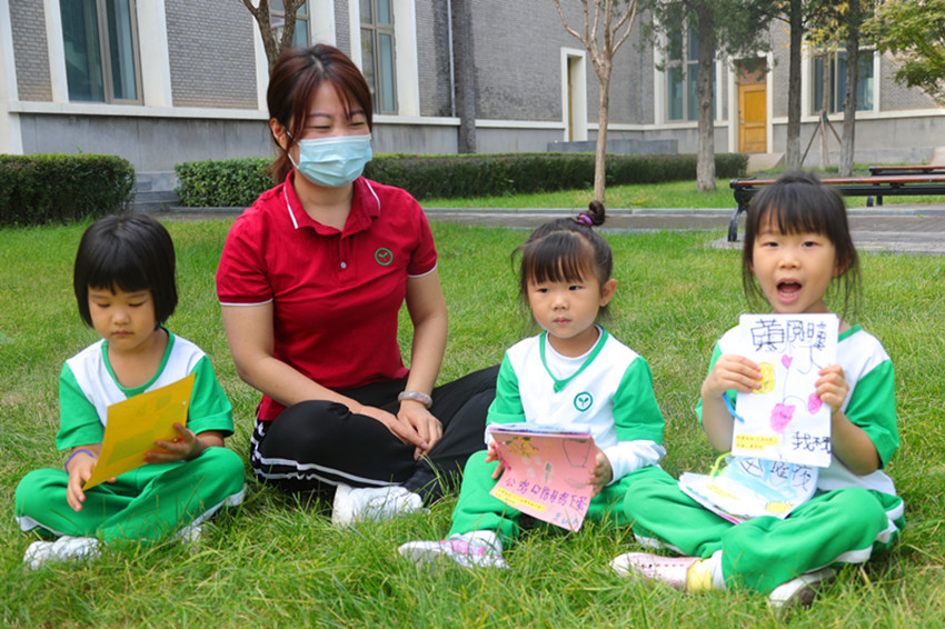 上幼儿园哭了,咋办呢? 有老师的关怀和陪伴 看看与爸爸、妈妈在一起的照片 象我这样,抱抱妈妈的衣服 哈哈,抱抱妈妈的衣服就不哭 中3班的好办法来啦! 小弟弟小妹妹请让我们来帮助你,经过小朋友们的讨论,大家的好主意是:给小弟弟小妹妹制作绘本故事书,再讲给小弟弟小妹妹听。 3位中3班的小姐姐在给小班的小弟弟小妹妹将自己亲手制作的绘本书里的小故事,虽然,姐姐们的声音不是太洪亮,但弟弟妹妹听地多认真啊! 讲故事啦! 《公鸡陪母鸡下蛋》的故事 讲述人:栗纯熙 母鸡想下蛋,公鸡很高兴,还没到早晨就打鸣。他们做了一个窝,在草地上生了好多蛋,还去草地上玩儿了。然后,母鸡又下了好多蛋,公鸡陪着鸡妈妈,他们生了好多好多的小鸡宝宝,一大家子在木板上玩了起来。 《漂亮的花》的故事 讲述人:薛清心 小朋友们在游泳池里游泳,旁边有许多玩具,然后,还有许多气球,有许多小朋友带着游泳圈在里面游泳,就像许多漂亮的小花浮在水里。 《妈妈种花》的故事 讲述人:吴俣潼 爸爸吃了一个葡萄,咦,怎么这么硬?原来,葡萄里有籽儿。狮子也来吃了一颗葡萄,它想,怎么这么硬呢?大章鱼闻着气味后,它也游过来吃葡萄了,蜗牛一家也过来吃葡萄了。现在,就有好多的葡萄籽儿,妈妈把这一些葡萄籽儿种在土里,会长出葡萄藤,开出淡淡的花。 《我不哭》 讲述人:黄阅曈 有一天,花园里的花慢慢发芽了,然后,宝宝妹妹姐姐去花园里玩看到了。他们一起卖棉花糖,闻着有鸡蛋、香蕉、牛奶混在一起的味道。有一天,他们喝了一杯特别搞笑的果汁儿,里面有小方格,还有牛奶和鸡蛋的味道。然后,宝妹妹弟弟的小区里就开出了一串红色的很搞笑、很漂亮的花。 上幼儿园哭啦?中3班的小朋友们还有哪些好主意呢? 瓜瓜:给弟弟妹妹画一幅搞笑的画,弟弟妹妹看到后会笑。 含含:哄哄弟弟妹妹,安慰他们。 阳阳:让弟弟妹妹早点回家。 李艾桐:画一个爱心送给弟弟妹妹。 赖沛然:给弟弟妹妹听音乐给他们讲故事,告诉弟弟妹妹幼儿园的好处,家里只有一个地方。 说说:逗弟弟妹妹玩,陪他们睡觉。 果儿:给弟弟妹妹一个大大的拥抱。 瞳宝:“给弟弟妹妹制作一本超级搞笑的故事书,讲给弟弟妹妹听。 梓瑞:“可以把爸爸妈妈照片拿到幼儿园,如果想爸爸妈妈可以看他们照片。 瀚宝:可以和好朋友一起玩儿玩具,这样就不想家了。 悟空说:我可以在美工区画一幅画,这样就不想爸爸妈妈了。 希希:给爸爸妈妈打电话。 瀚宝儿:给他们好吃的,带他们去小木屋玩。 上幼儿园哭了?想爸爸妈妈了?小2班的小朋友们怎么做的呢? 马梓腾:幼儿园里有好多好玩的玩具,我不哭。 冀雨佳:幼儿园里有好多小朋友和我一起玩,我不会哭。 倪圣尧:这里有我喜欢的老师和我一起玩儿游戏,和我一起唱歌儿,我也不幼儿园里好大呀,还有好多的树,我喜欢。 郭力纬:幼儿园的院子特别漂亮,还有滑滑梯,我喜欢来幼儿园。 小弟弟小妹妹上幼儿园哭了?想爸爸妈妈了,怎么办?大3班的哥哥姐姐有好办法啦! 邱子琪:跟自己的好朋友一起玩儿。 张维岳:可以想快乐的事情,开心的事情,然后等着爸爸妈妈来接,可以晚上和爸爸妈妈好好亲热。 侯彦如:可以冷静下来,转移自己的注意力,找自己的好朋友一起玩儿。 张博珩:可以在心里想爸爸妈妈,可以把老师当成爸爸妈妈。 袁琳夕:快乐的面对幼儿园的生活,耐心地等着爸爸妈妈晚上来接。 杨筠若:可以看自己喜欢的书,去发现幼儿园有意思的东西,可以交新朋友。 李锦潼:可以中午美美地睡一觉,睡着了就不想爸爸妈妈了。 张维岳:可以想幼儿园里快乐的事情。 何慕岩:可以让妈妈在脸蛋上或手背上留下一个吻 ,想妈妈的时候摸摸妈妈留下的吻。 中2班:上幼儿园哭了?想爸爸妈妈了,咋办? 陶问汐:我哭的时候抱着我的小玩偶阿小,我就不哭了。 陶钧傲:别的小朋友安慰我,我就不哭了。 郭华旸:我一去幼儿园的小木屋,玩的一高兴,我就不想回家了,家里没有小木屋。 杨梓婳:老师教给我们讲好听的故事,带我们出去玩,给我们做好吃的,我一想到这些,我就想笑了。 姚億东:幼儿园那么好,老师那么好,幼儿园还有那么多好玩的玩具,你们还哭的话,老师该心疼了。 张朝淇:幼儿园那么多玩具,老师布置的这么漂亮,弟弟妹妹,来跟我们玩吧。 莽艺萱:老师像妈妈一样哄你们,你们不要哭了,老师很爱我们的! 小朋友新入园都有一个适应期,家长要以积极的态度帮助宝贝一起渡过难关。在最初入园的一两个月里,特别是国庆长假后,应多花时间来陪伴孩子,给他们心理上的安全感,让小朋友逐渐去适应接受新环境。 在家里多鼓励小宝自己动手做事,自理能力强的小宝会很自信,在集体生活中有成就感,从而从中获得快乐。 新入园不久的孩子,又刚经过8天的双节长假,孩子们入园又不太适应了,有些孩子头几天不哭,是因为刚开始感觉新鲜,几天之后就有后反劲,反应过来之后就开始哭。让孩子做到不哭,很难,建议父母做到镇定离开。 经历了一天的分离焦虑,孩子需要得到父母爱的补偿。所以,晚上一定要留出时间,给予孩子高质量的陪伴,可以多玩能够开怀大笑的游戏,释放 自疫情爆发以来,孩子们长时间呆在家里,与同伴们一起活动和与人沟通合作的机会减少了。本学期开学后,孩子们又重新走出家门,产生入园焦虑的孩子会比以前的学期开学多一些。 如今,中国儿童中心实验幼儿园在“共情润心 双
