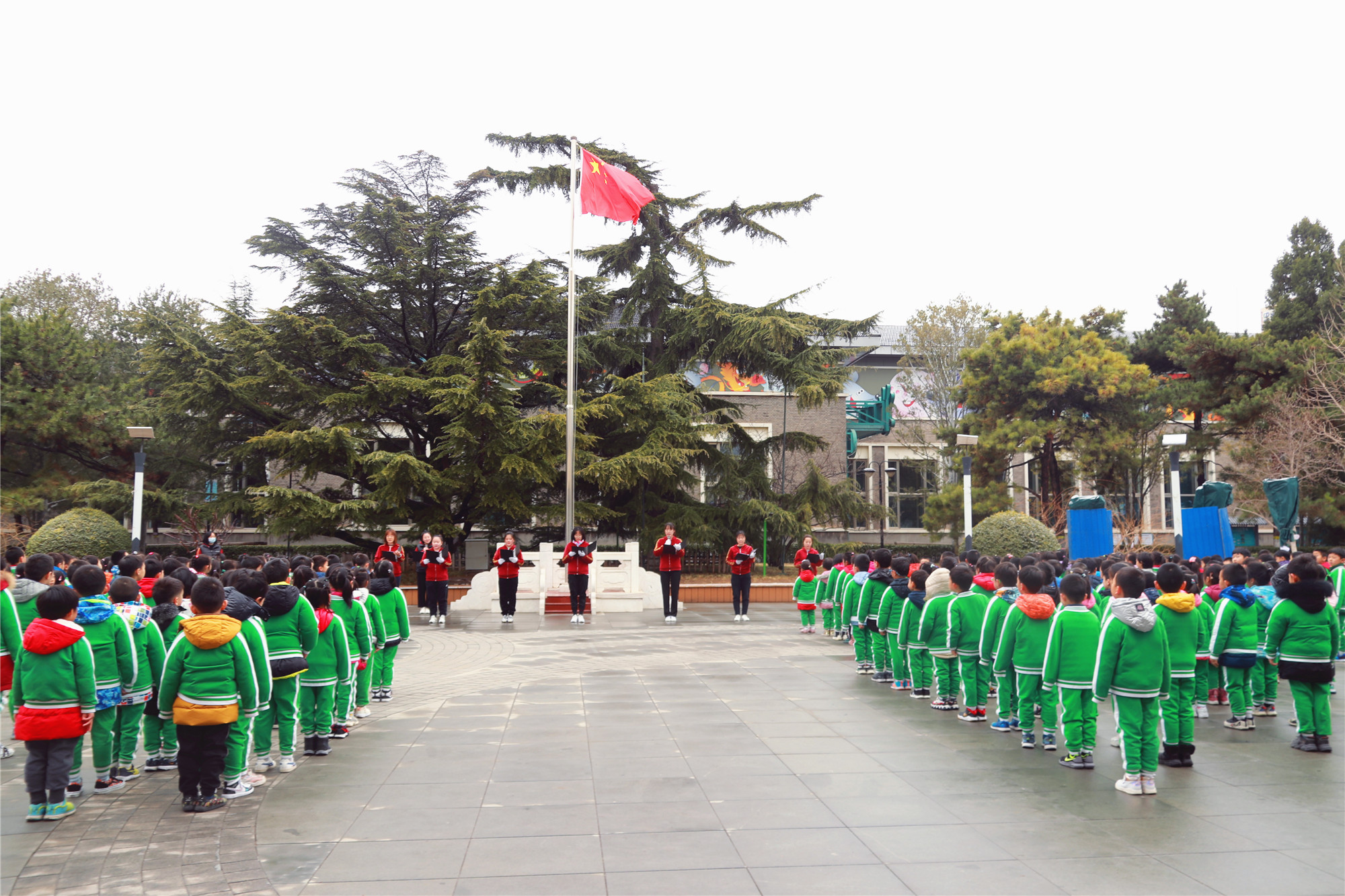 3月1日早晨,北京春雪轻撒,地上白了,树上白了,房子上也白了,在大地妈妈白色的羽翼里,中国儿童中心教学楼内外,又传来了孩子们的欢声笑语,处处充满了快活的空气。 晨 检 幼儿园,我来啦! 我满怀期望地走进幼儿园,小伙伴们长高了么?谁已经到幼儿园了?我又可以和老师、小伙伴们在一起了!我要加快脚步向前走。 放假时间是长了些,哎呀呀,哪是我的柜子呀?我在老师的帮助下,终于找到自己的小柜子了! 精彩瞬间 小一班老师和孩子在玩飞驰的小汽车游戏。 区域游戏之一角。 “老师,这是我最喜欢的小猪佩奇。 ”小班白沐可刚见到老师,就亲切地与老师聊天了。 升旗仪式 3月1日上午,中国儿童中心副主任、学前教育部部长兼幼儿园园长杨彩霞,学前教育部副部长薛扬来到文艺宫广场,与老师、孩子们共同参加了升国旗活动。 在庄严的氛围里,在雄壮的国歌声中,五星红旗徐徐升起后,迎风飘扬,老师、孩子们怀着激动的心情大声唱响《国旗国旗真美丽》,歌声嘹亮,文艺宫广场变成了一片歌声的海洋,大家舞动在春风里,师幼们的仪式感油然而生。 “履行职责,为人师表,言传身教,行于至善,博学善教,为人民教育事业奋斗终身,我自豪,我是光荣的幼儿教师。”在升旗仪式上,老师们的铮铮誓言,在上空回响,如春风吹绿江南岸、似甘霖滋润爱的心田。 开学第一课 孩子们刚入学,对周围的环境、事物都充满着新鲜感和好奇心,中国儿童中心实验幼儿园的老师们利用开学第一课,开展了丰富多彩的安全健康教育活动,如春雨细无声地浸润着孩子们幼小的心灵,为孩子们的健康幸福助力。 大二班 刘老师借助图文并茂的PPT,老师向孩子们开展了生命安全教育和健康教育等,交通安全、校园安全、食品安全、用电安全、疾病安全、防震安全、防溺安全等的重要知识,使孩子们认识到生命只有一次、健康不能重来,生命安全就掌握在我们自己手中;这不仅关系到自己,也关系到自己的家庭、学校、整个社会及国家的安全与发展,启发了孩子们珍爱生命,提高自救能力,增强安全防范意识,让快乐与幸福伴随自己幸福成长。 中二班 赵老师通过孩子们观看情景表演、认识十字路口、辨识交通标志等有趣活动和模仿警察叔叔指挥交通的延伸活动,使幼儿丰富了交通认知;体验交通规则的重要性,做到自觉遵守交通规则;能大胆、清楚地表达自己的见解;初步培养幼儿的安全意识,提高自我保护能力;积极做一名宣传交通安全的小小宣传员。 小三班 “小朋友,上学校,走路要走人行道,过马路别乱跑,十字路口看信号,红灯停,绿灯行,黄灯亮了等一等。”朗朗上口的儿歌和上肢活动,激发了孩子们的学习兴趣,小三班、小四班的幼儿将交通安全记在了心上。 小四班 “饭桌前,坐坐好。扶好碗 ,拿好勺。张大嘴巴, 瞧一瞧,乖乖吃饭,长高高。”孩子们小嘴巴里说着《吃饭礼仪歌》,高兴地手舞足蹈,看,小可爱们在快乐中学习和成长着。
