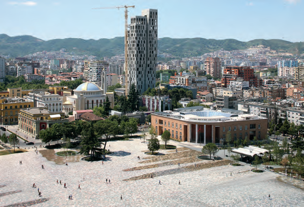 本周继续分享儿童友好街道设计规划中的又一切入点——对城市街道空间改造或重塑,以期为儿童友好街道建设带来启发。 改造 改造或重塑指为人们分配活动空间。在城市中空间是有限又珍贵的资源,街道的空间分布决定了移动效率和人们的日常活动。具体而言,街道的改造重塑可通过重新分配道路空间、限制私家车使用和为儿童改造玩耍空间等方面进行。 1.重新分配道路空间以实现高效和可持续 用公交车道、自行车保护性设施或人行道取代车行道,以减少车辆,使更多的人使用有限的空间。 2.车流量和停车管理 提供安全优惠的公共交通和骑行设施与配套服务。通过移除机动车道、调整停车费用等方式,减少道路上的机动车数量,抑制私家车的使用。 3.改造多余空间 通过将行车道变窄、增大转弯半径等方式,压缩十字路口空间,释放更多用于儿童和行人玩耍和休息的空间,或用于扩展缓冲区、路缘等以提高安全性。 4.创建仅行人使用的街道和共享街道 将整条街道进行改造:关闭行车道仅供行人使用;或将街道改造为低速街道:车辆、自行车和行人限速均为10-15公里每小时。 改造重塑案例:斯坎德培广场 斯坎德培广场是阿尔巴尼亚首都地拉那的中心,位于城市两条主要道路的交叉口。广场旁有城市的重要建筑:市政厅、文化宫、政府部委办公楼和博物馆等。 该广场的改造计划共经历了两个阶段。 2010年,斯坎德培广场十分空旷,广场周围都是停车场或行车道。市政计划将广场改造为一个行人和公共交通专用区。但由于城市管理发生变化,项目终止。广场在第二年又变为了机动车的空间。 改造前的斯坎德培广场 图片来源:比利时 51N4E建筑事务所官网 2016年,随着新一届领导上任,城市重新实施2010年的斯坎德培广场改造计划,以优先考虑广场上的行人和公共交通为宗旨,重新建立了一个无车区。利用广场的空旷空间,将其重新设计为更舒适温馨的广场,并成为城市儿童和市民日常生活的一部分。该改造计划邀请了包括儿童在内的所有公民参与。广场周边被改造为12 个花园空间,花园里种植着当地植物,使广场边缘变得柔软,成为拥挤的城市和广场之间的过渡,空间上也使用植物连接相邻的建筑。原地上停车场被移除,改建为多功能的地下停车场。在地面上铺设了彩色马赛克瓷砖,增加了层次感。此外广场中增加了水元素、长椅、遮阳设施以及可移动的街道设施,增强了儿童与家长玩耍休息的便利性,也提高了广场的使用体验。 改造后的斯坎德培广场 图片来源:比利时 51N4E建筑事务所官网 改造后的斯坎德培广场为人们创造了更多见面、玩耍和放松的机会,也使广场附近的建筑更加充满活力。为了促进广场的步行化,城市设立了“无车日”,鼓励儿童照护者和孩子们步行或骑车上学。 彩色马赛克地面 图片来源:比利时 51N4E建筑事务所官网 广场中增加的遮阳休息空间 图片来源:比利时 51N4E建筑事务所官网 适儿化改造是儿童友好空间的常见切入点。改造时,可灵活运用城市和街道的多余空间,增加儿童和行人的活动空间。在斯坎德培广场的改造中,原本空旷的场地被改造为儿童与行人玩耍游憩的空间。此外,通过发起活动鼓励儿童与行人步行,保证广场改造后的利用率,也是该案例的一个亮点。 下期将继续分享儿童友好街道设计规划的“激活篇”及其相关案例。
