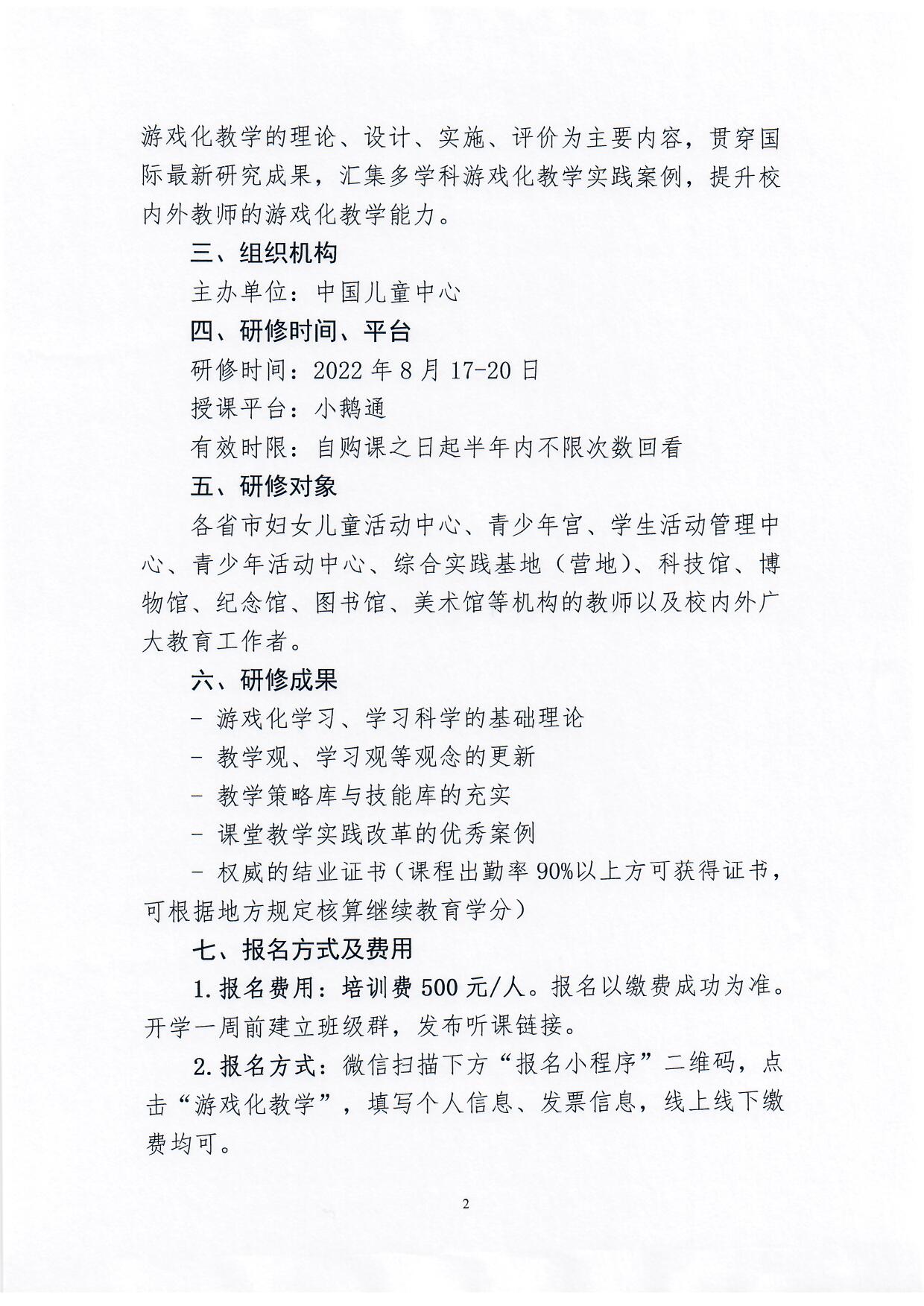 关于举办2022年“以儿童为中心的游戏化教学”教师研修活动的通知