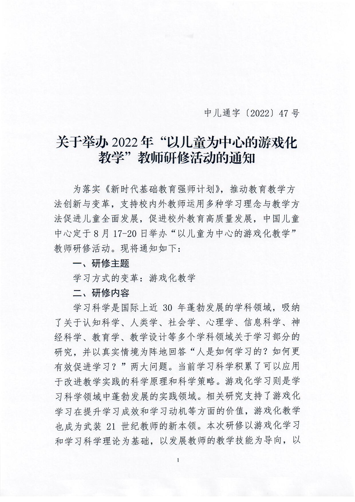 关于举办2022年“以儿童为中心的游戏化教学”教师研修活动通知.pdf