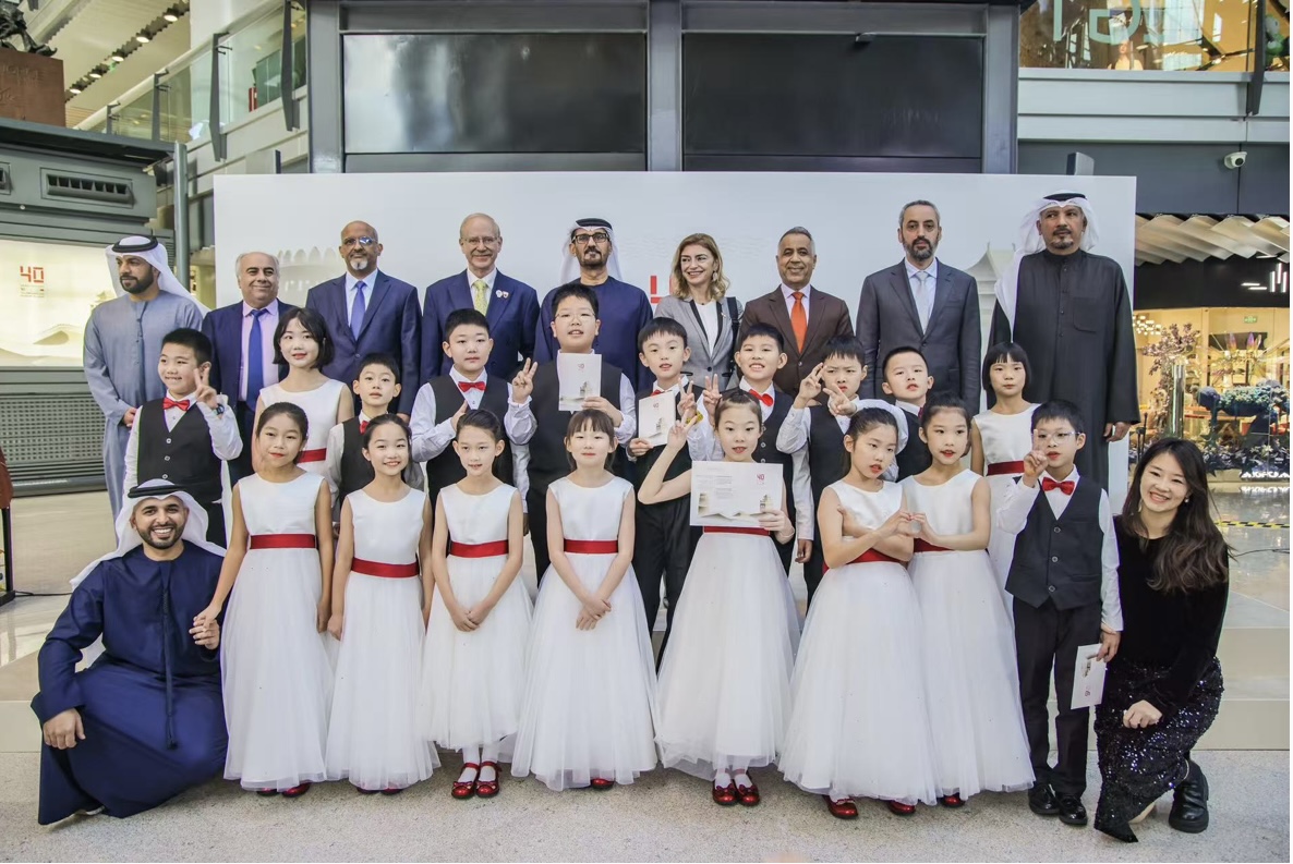 11月28日,中国儿童艺术团国际合唱团受邀参加了阿联酋-中国建交40周年的庆典活动,为两国文化交流增添了亮丽的一笔。在阿联酋驻华大使侯赛因·哈马迪阁下及中外嘉宾的见证下,合唱团孩子们用纯真的童声和精湛的演唱技巧,深情演绎了励志歌曲《把未来点亮》,以清澈透亮的歌声传递出对未来的美好憧憬,以及对中阿友谊的深情厚谊,赢得了现场观众的热烈掌声和高度赞誉。 演出结束后,合唱团成员们还积极参与了友谊节活动,并参观了“阿中艺术共同体:庆祝中国-阿联酋建交40周年青年艺术家创研大赛”作品展。通过体验两国传统手工艺品和参观展览,他们不仅深入了解了彼此的文化和习俗,更亲身感受到了中阿两国在艺术领域的深厚交流与密切合作。 此次活动是中国儿童艺术团国际合唱团的一次重要艺术实践,也是他们用自己的艺术特长为增进中阿友谊、促进文化交流与合作所做出的积极贡献! |