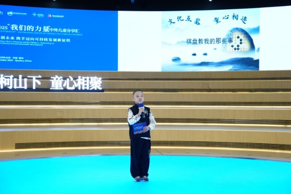10月25日,由中国儿童中心、浙江省妇女联合会、衢州市人民政府联合主办的“我们的力量”中外儿童分享汇在衢州成功举行。来自中国、美国、加拿大、澳大利亚、捷克、智利、克罗地亚、吉尔吉斯斯坦、新加坡、泰国等国家和地区的百余名儿童代表,围绕文化、环保、科技等主题进行交流分享,共同向世界发出《童创未来:携手迈向可持续发展新征程》倡议,展现了少年儿童对全球可持续发展目标的深刻思考与积极行动。 金秋衢州,菊香满园。活动在衢州鸣天少儿古筝乐团激昂的《鼓韵筝鸣》演奏中拉开帷幕。中外儿童代表围绕“文明互鉴·童心相连”---穿越时空的文化使者、“绿水青山·童声共鸣”---全球视野下的环境守护、“智汇未来·童创无限”---从围棋AI到无界科技三个主题进行演讲分享,开启一场跨越国界的友谊之旅。 文明互鉴·童心相连 在“文明互鉴·童心相连”主题分享环节,来自衢州的杜尚洁与方湘怡以《以童声筑未来 做照亮共同世界的少年先锋》为题,讲述了各自作为衢州市儿童观察团成员为城市发展建言献策的儿童参与实践,展现了新生代的责任与担当。 美国少年Dash通过讲述个人学习围棋的经历,诠释了围棋是架起跨文化沟通桥梁的理念,期盼通过围棋建立起跨越国界的友谊。 捷克少年Jan Komín则分享了围棋如何成为跨越文化的纽带。 中国小朋友江一民以《棋盘教我的那些事》娓娓道来围棋对人生的启迪。 郏希妍、郏浩宇、余芷怡三位同学则带领观众《穿越千年的节日密码》,解码中华传统节日的深厚内涵。 冀欣宁同学从“衢”字切入,讲述了衢州历史、南孔文化以及围棋所蕴含的智慧,呼吁尊重各国文化多样性。 来自澳大利亚的胡炎林分享对音乐作为最好的使者链接不同文明的期待,并现场吉他演奏《Believer》。 绿水青山·童声共鸣 在“绿水青山·童声共鸣”环节,来自中国的雷安娜分享了在家门口国家公园中感悟自然的经历。 加拿大华裔Zoey以讲述自己融合越剧与山水美学,展现东方生态智慧,更展现了对中加两国传统文化的感悟。 曹杨、苏骏哲则发出《一起做绿水青山的小守护者》的环保宣言。 来自智利的Emilio讲述了南半球的环保实践。 克罗地亚的Stjepan Medak以《The World Beyond the Go Board》为题分享自己在一款溯景寻踪游戏中感悟到保护地球绿水蓝天的责任感。 孩子们用行动证明:守护地球无需等待长大,童心亦可共鸣全球。 智汇未来·童创无限 “智汇未来·童创无限”环节将活动推向高潮。中国小朋友余书畔在《AI and ME》中探讨人工智能与人类的协作共生。 来自泰国的Methit通过视频分享了科技助力不同地区的人理解彼此的喜悦、共同创造未来的成就感。 新加坡团队杨涛瑜、徐晓凡、陈亦函等三人分享了《科技赋能向未来,共护地球同前行》的实践案例。 来自吉尔吉斯斯坦的Elim分享与人工智能下围棋的经历,传递出科技助力平等机会的想法。 来自中国的沈琬婷则从棋盘AI延伸至无界创新,呼吁以科技伦理引领未来。 孩子们的演讲不仅展现了科技素养,更传递出对可持续发展目标的深刻理解。 儿童倡议 · 童创未来 中外儿童代表联合发布了《童创未来:携手迈向可持续发展新征程儿童》倡议,呼吁各国儿童携手行动,向世界展示新时代儿童的责任与力量,共同参与文化传承、环境保护与科技创新,共同奔赴可持续发展新征程,为创造更加美好的世界全力以赴。 联合国儿童基金会驻华代表处儿童友好城市项目官员杨菡通过视频为中外儿童的精彩发言进行点评并给予充分肯定。她认为,此次分享汇在国际参与上体现了多样性,共同汇聚起属于年轻人的独特声量。她说,来自世界各地的儿童代表们分享了属于儿童的独特观点,不仅展现出心怀天下、追求可持续发展的胸怀,也在思考如何让自己和身边人的生活变得更美好。希望大家都能够既关注身边具体的人、事、物,也将目光投向那些更遥远、甚至被忽视的角落的世界。 中国儿童中心党委委员、对外交流中心主任余冬云在致辞中提到,今年是联合国可持续发展目标实施十周年,也是向2030年可持续发展议程加速迈进的关键节点。儿童是连接世界的纽带、是可持续发展直接参与者与受益者,连续第三年围绕可持续发展目标举办分享汇,并向全世界发出儿童倡议,既是儿童参与可持续发展的最佳诠释,也彰显了中外儿童为共建人类美好未来的责任与担当。期待各国儿童在这里收获友谊、碰撞思想,更期待在倡议影响下,有更多中外儿童参与,共同为加速实现可持续发展目标而行动,为共建人类命运共同体注入新的无穷力量。 文化寻访 · 童探衢城 此次在衢州举办的2025“我们的力量”中外儿童分享汇,不仅是一场跨文化对话,更是一次童心与未来的双向奔赴。活动期间,来自22个国家和地区的儿童参加了2025“衢州烂柯杯”国际儿童友好围棋锦标赛;中外儿童还参观了衢州古城,寻访体验衢州这座历史文化名城的活力,体验中国传统非遗手作(香囊制作);登上水亭门城楼,体验重阳节登高祈福的传统习俗;走进烂柯世界围棋文化展示馆,深入了解围棋文化的起源与发展。 |