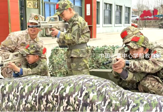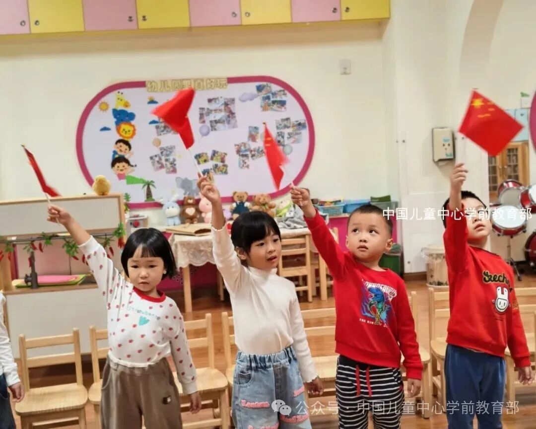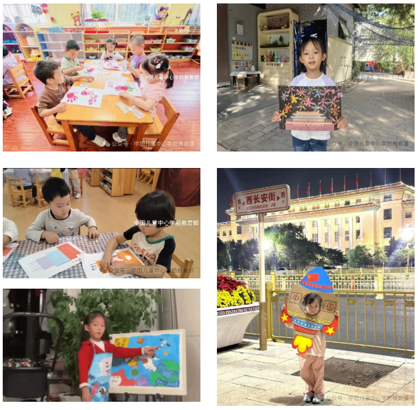 前言 在新中国成立76周年之际,实验幼儿园在中国儿童中心的领导下,联合各地妇联系统幼儿园、全国姐妹园及街道社区,共同发起,联动开展第三届“我们心中的家与国”爱国主题活动。 活动紧扣“根植家国情怀,培育时代新苗”宗旨,遵循3-6岁幼儿认知特点,以点带面,逐渐推动更多幼儿园的爱国主义启蒙教育的体系建设,使爱党、爱国、爱家乡和爱集体的萌芽,在更广阔的童年土壤中茁壮成长,为培养大国少年儿童做出新贡献。 近年来,中国儿童中心认真落实全国妇联对妇女儿童工作的部署,高度重视3-6岁幼儿爱国启蒙教育工作,学前教育部联合妇联系统幼儿园、全国各地的姊妹园,深入开展一系列爱国主题活动,并得到广大家长的好评,积极投入到活动中亲子互动,让更多的家庭点亮希望之光。 科技强国·时代梦想 看!我们国家的地图像一只大公鸡昂头鸣叫,高高的长城,是巨龙爷爷在山上睡觉,故宫里有着许多古代皇帝的故事,黄河、长江像两条长长的丝带,从西到东飘呀飘,给田野送去甜甜的水,春天它们哗啦啦唱歌,冬天静静地伸向远方。我们都是爱祖国妈妈的好儿童,在五千年文明的花园里,快乐成长! 祖国妈妈·我们爱您 我们是山东省妇女儿童活动中心幼儿园的小朋友!今天,我们可神气啦,穿上迷彩服,好像解放军叔叔! 我们趴在地上,紧紧握住“小钢枪”,眯起眼睛认真瞄准靶心。虽然胳膊有点酸,但一想到解放军叔叔保卫国家的样子,我们就坚持住啦!现在我们就像守护家乡的小英雄,心里满满都是骄傲——当中国娃,最光荣!