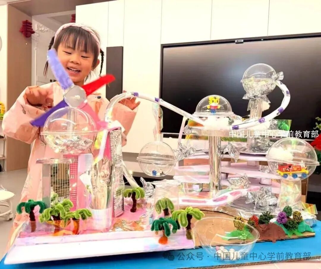 图片说明:看,这是中国儿童中心实验幼儿园中五班的小朋友手工制作火箭发射器!