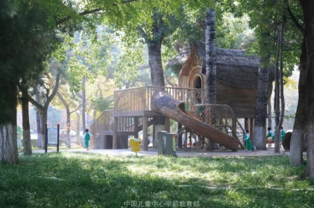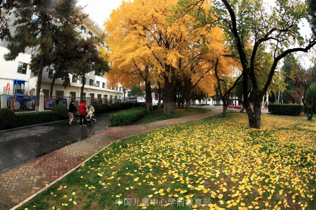 当一片片梧桐叶在路边旋落,中国儿童中心大院在金色满眼中,悄然步入了冬季的门庭。 秋风吹尽旧庭柯,黄叶丹枫客里过。飘落的叶片,仿佛仍在诉说一段段绚烂的羁旅故事。 从深秋到初冬,似曾有秋仙子凌波微步,回眸一笑,衣袂轻扬,以蓝天为帛,用彩霞作色,将整个院落渲染得层层叠叠——黄如鎏金,灿若云霞,翠似碧玉,令人心驰神往!刘禹锡笔下“晴空一鹤排云上”的豪迈,在这里找到了现实的注脚。 那些被数年西风雕琢过的虬枝,愈发衬托出惜时者前行的身影。走进院门,但见翠幄张天,柔茵铺地,综合楼、艺术宫、教学楼与体育馆错落挺立,与青屋顶与形似展翅雄鹰的老牛儿童探索馆遥相呼应。这片热土以其坦诚与厚重,默默诠释着立德树人的永恒主题。 值得一提的是,学前教育部充分依托这一优美的自然环境,积极探索“因地制宜”的自主游戏实践。孩子们在林间探寻、在草坪奔跑、在落叶中创作,大自然成为最生动的课堂。通过富有生态意蕴的教育实践,部门不仅为孩子们构建了和谐共生的教育生态,更将经验辐射至更广阔天地——携手少数民族地区与边远乡村,共同推进0-6岁儿童早期事业发展,让优质教育的种子在每一片需要的土地上生根发芽。