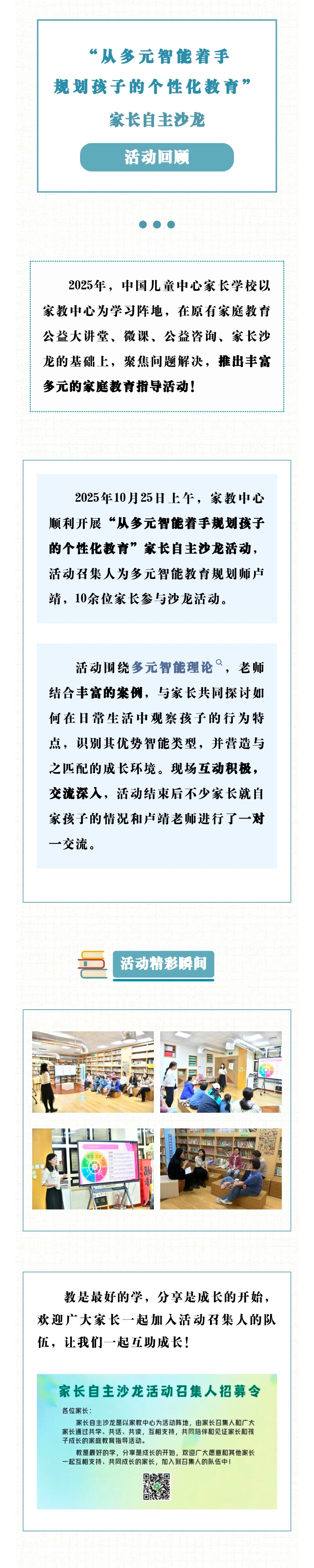 活动回顾 | “从多元智能着手规划孩子的个性化教育”家长自主沙龙顺利举行