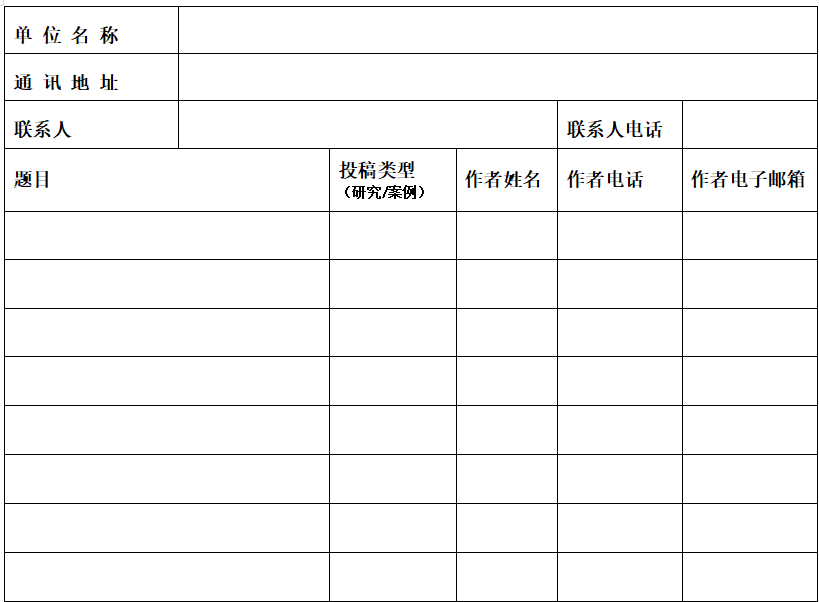 注:请在2026年5月10日前,将征稿报名表与稿件打包发送至“双新会”投稿邮箱:cnccsxh@163.com,邮件名称:第九届双新会投稿+单位名称,逾期拒收;“作者姓名”处,请填写稿件所有作者,人数不超过3人;“作者电话”“作者电子邮箱”请填写第一作者/唯一作者的信息。