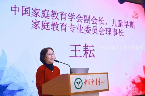 活动同步通过中国儿童中心直播平台面向公众开放,累计吸引近万余人次在线观看,反响热烈。本次学术活动内容分为主旨报告与专题分享两大部分。三场主旨报告由早专委副秘书长、中华女子学院教授池丽萍主持;六场专题分享由早专委副理事长、中国科学院幼儿园(原)总园长王春菊主持。早专委副理事长、北京大学儿童青少年卫生研究所马军教授,早专委副理事长、北京中基智库联合创始人李晋红研究员,《中国教育报》学前周刊主编纪秀君等嘉宾也出席了会议。 领 导 致 辞 中国家庭教育学会儿童早期家庭教育专业委员会理事长王耘致辞。王耘理事长提到,在深入贯彻党的二十大四中全会精神背景下,本次年会旨在推动儿童早期家庭教育的理论探索与实践转化。党和国家高度重视家庭教育与儿童早期发展,相关法律政策为事业发展提供了根本遵循。早专委在中国家庭教育学会和中国儿童中心的支持下,聚焦0—8岁儿童,持续深化理论研究,立项了涵盖医教养融合、家校社协同等前沿领域的30项学会课题;扎实开展指导服务,通过“托举明天·育见未来”等系列品牌活动,累计培训从业人员超4000人次;积极搭建学术平台,“看见儿童·与你成长”等系列活动累计吸引2.8万人次参与,形成了广泛的专业影响力。本届年会聚焦“儿童早期心理健康”,旨在回应数字化、少子化等社会背景下家庭面临的现实焦虑与育儿压力,希望通过学术交流汇聚智慧,传播科学理念,为赋能家庭育儿、促进儿童终身健康发展播下希望的种子。她预祝会议圆满成功,并呼吁与会者要携手共进,为儿童健康成长贡献力量。