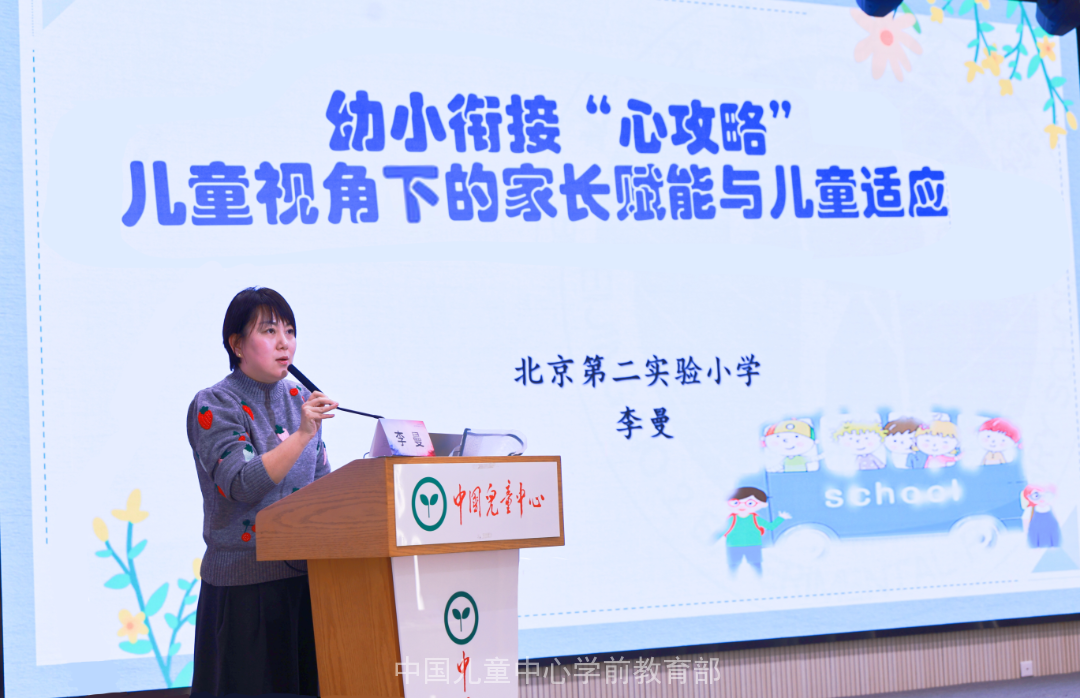 北京第二实验小学年级主任、高级教师李曼在题为“幼小衔接“心”攻略:小学视角下的家长赋能与儿童适应”的分享中,围绕幼小衔接展开分享,强调这一阶段对孩子成长以及家庭和幼儿园教育的重要意义。结合学校教育教学实践,阐述了儿童在上小学之前应做好的物质准备和四个维度准备,即身心准备、生活准备、社会准备和学校准备。比如身心准备,通过了解小学生活、共读相关绘本等方式激发孩子对入学的期待,同时,注重情绪管理和运动能力;生活准备,帮助孩子调整作息、加强安全防护意识、提升生活自理能力,并鼓励其参与力所能及的劳动;社会准备,注重培养孩子的交往合作能力、诚实守规意识、任务执行意识和集体荣誉感;学习准备,重点培育观察、专注、阅读、表达和倾听等关键能力与习惯。家长与幼儿园应协同配合,支持孩子平稳度过幼小衔接这一关键阶段。