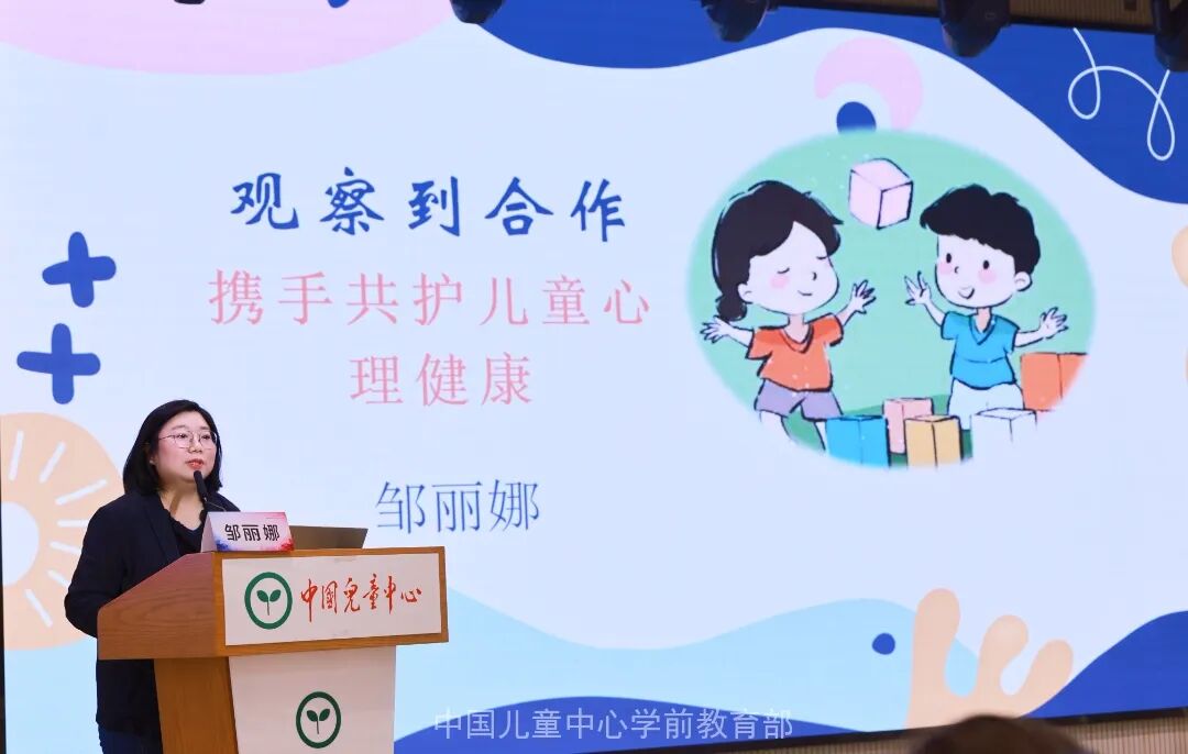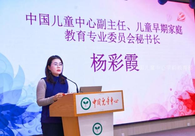 中国儿童中心副主任、中国家庭教育学会儿童早期家庭教育专业委员会秘书长杨彩霞致辞。杨彩霞立足国家政策导向,提到儿童早期是人力资本投入产出比最高的时期,党中央高度重视并出台系列政策,为儿童早期发展工作指明方向。中国儿童中心作为国家级校外教育单位,积极发挥科研引领、实践创新、示范带动作用,牵头研制全国首个托育行业标准,搭建多元交流平台,开展全国家庭养育健康素养调查,推动行业规范化发展。中心积极贯彻落实国家关于促进人口长期均衡发展的决策部署,缓解家庭在生育、养育、教育的压力,聚焦家庭所需打造集亲子、托育、幼儿园、社区公益活动等为一体的“一站式”家庭养护支持体系,并与联合国儿童基金会合作,通过“爱在开端”项目将“一站式”服务辐射至全国18省市区563个项目点,让更多儿童和家庭从中受益。本次活动聚焦儿童早期心理健康,赋能家庭科学育儿,呼吁各位会员携手,共同筑牢儿童早期发展的坚实基础。