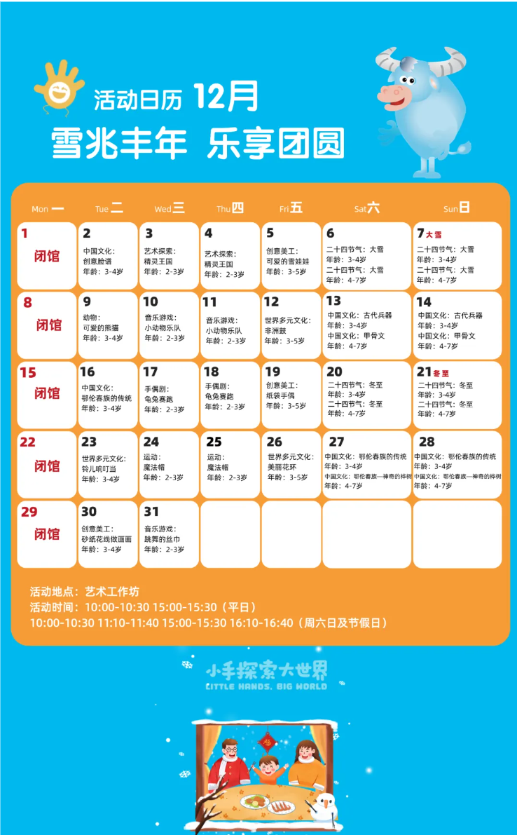 12月开放日历及活动预告