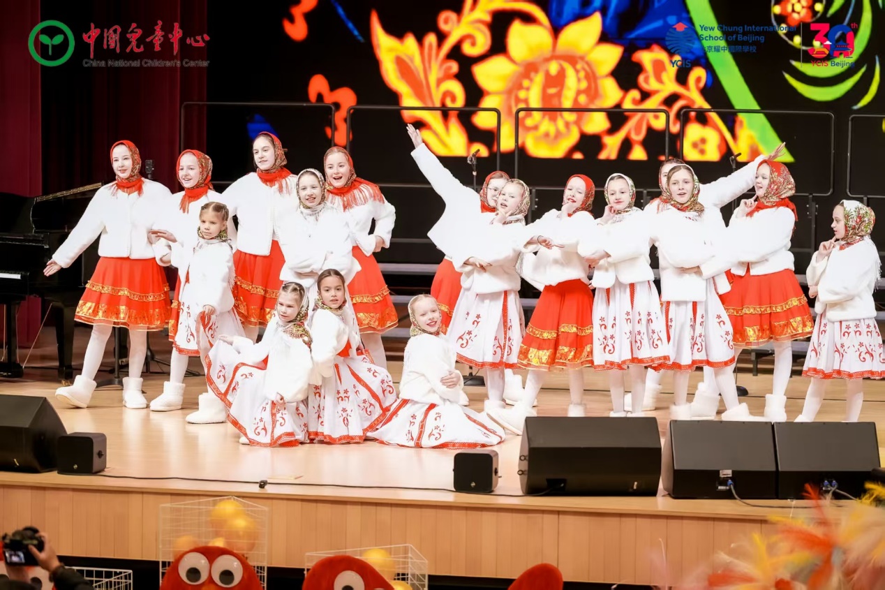 第二篇章 “童心飞扬 多元之声” 汇聚丰富的文化元素:中国儿童艺术团国际合唱团提高A班演绎的古典词牌《行香子》,以轻快旋律再现唐宋诗词的悠远意境;俄罗斯驻华使馆学校的孩子们带来合唱《小蜜蜂》与舞蹈《毡靴》,生动展现俄罗斯民族风情;国际合唱团小男生们演唱的《中国功夫》,以阳刚之声诠释 “止戈为武” 的民族智慧;王奕彤同学的小提琴独奏《丰收渔歌》,则用悠扬琴声描绘出渔民满载而归的欢乐场景。