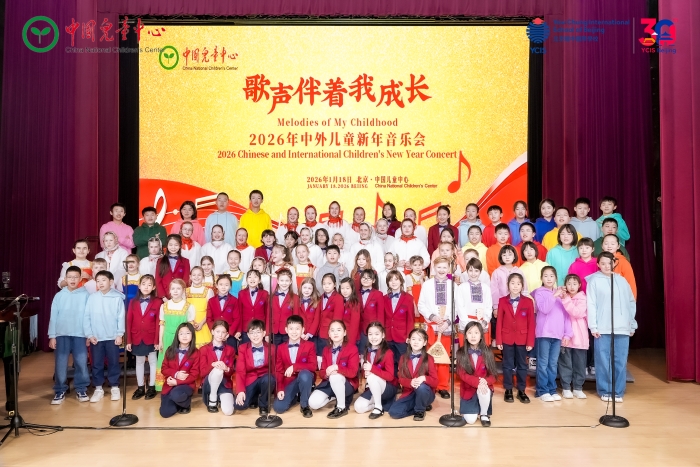 2026年1月18日,由中国儿童中心主办的 “歌声伴着我成长”2026年中外儿童新年音乐会成功举办。来自中国、俄罗斯、泰国、爱尔兰、南非、加拿大等十国200余名中外儿童同台演出,用童声搭建文化交融与友谊的桥梁。中国儿童中心主任苑立新,外交学院副院长李洪梅,著名指挥家、教育家吴灵芬教授,外交部礼宾司原副司长李涛,原文化部公共文化司一级巡视员周广莲,中国歌剧舞剧院原副院长李小祥,以及泰王国驻华大使馆公使衔参赞梁益祥先生、参赞王媛女士,塞尔维亚驻华大使馆一等参赞碧莲娜·斯坦科维奇-伊万尼奇女士,俄罗斯联邦驻华大使馆三等秘书卡恩托娃·玛丽亚女士,俄罗斯联邦驻华大使馆学校校长谢尔盖·彼得罗夫先生等出席。中宣部、外交部、全国友协、北京友协等单位代表参加。北京广播电视台主持人、北京申冬奥陈述人王新星和中心模联学员白穆涵担任音乐会中英双语主持人。中国儿童艺术团国际合唱团、俄罗斯驻华使馆学校、北京耀中国际学校小学合唱团联合演出。