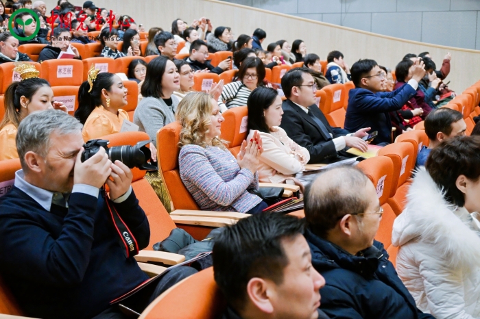 第五篇章 “温情尾声 友谊长存” 改编版《友谊地久天长》成为全场焦点。这首由范雪辉老师重新编排、融入中国民歌《茉莉花》旋律的作品,象征着中外友谊的深厚绵长。著名指挥家吴灵芬教授亲自登台指挥此曲,将现场气氛推向高潮。最终,全场嘉宾与演员共同唱响《新年好》,音乐会在温馨的旋律中落下帷幕。