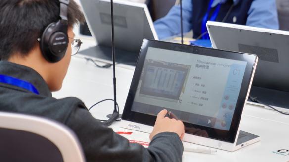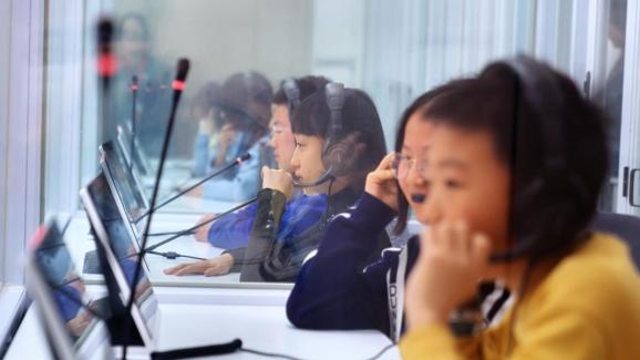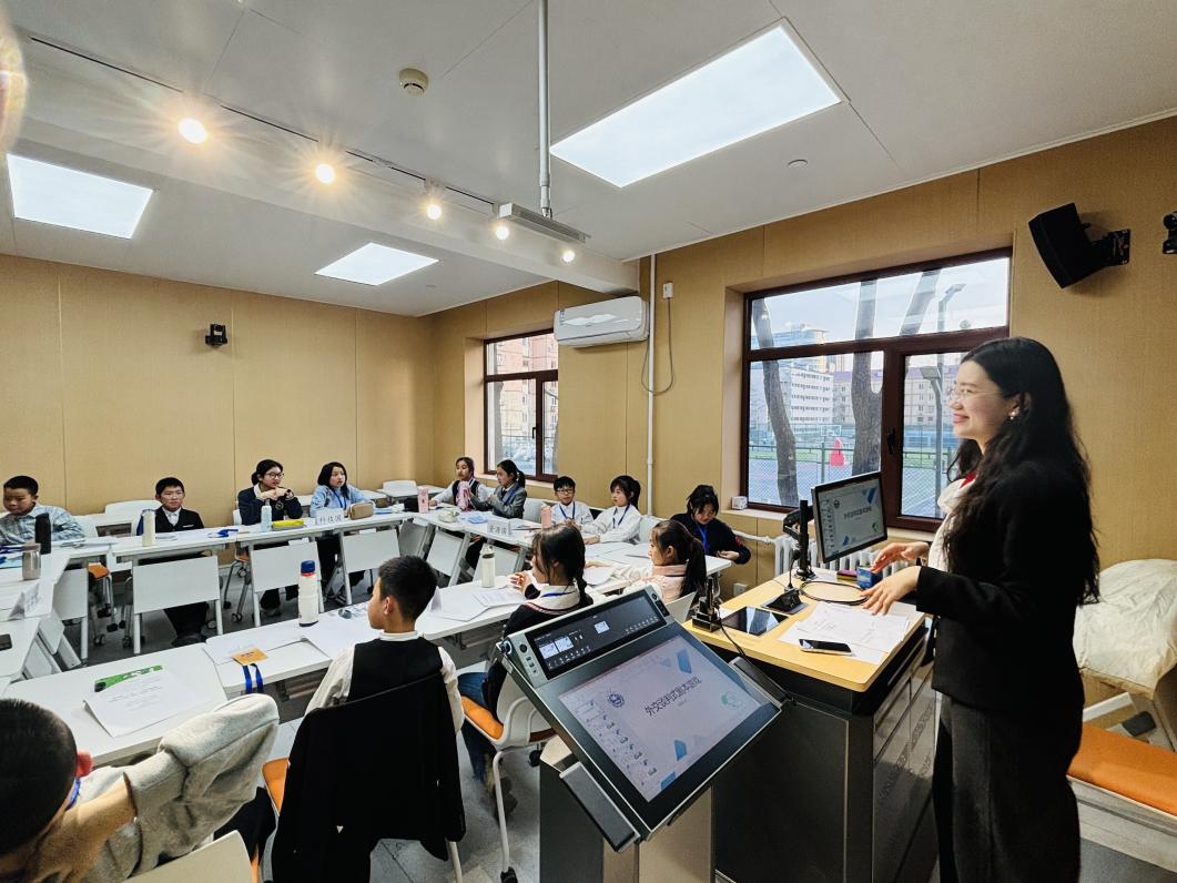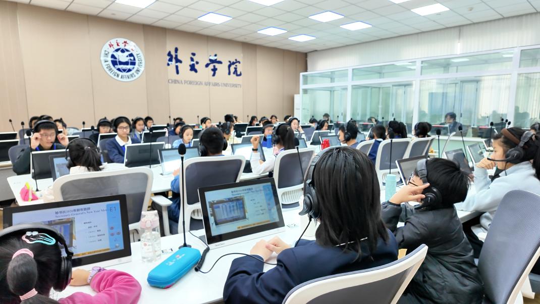 在外交翻译实验室,学员们被专业的翻译设备深深地吸引。他们在老师的引导下,学员们兴致盎然地了解了外交翻译的基本知识,体验使用了同声传译设备。