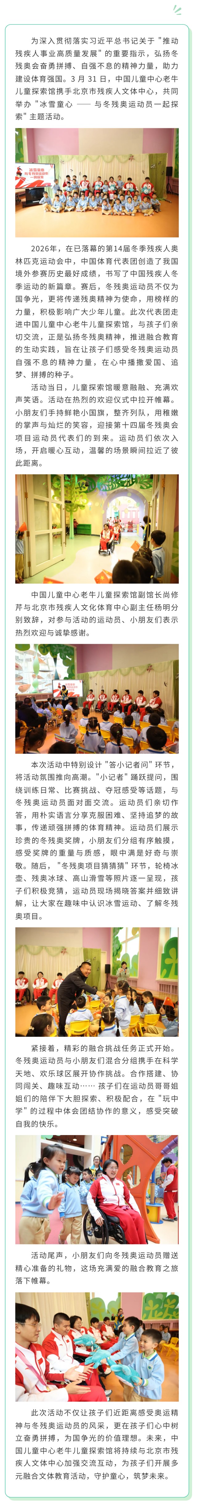 "冰雪童心 ——与冬残奥运动员一起探索" 主题活动成功举办
