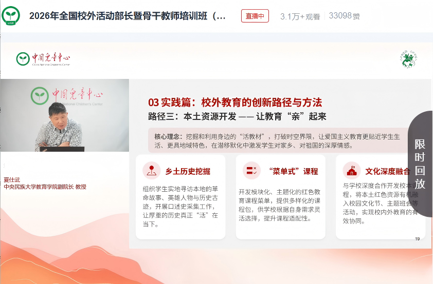 | 聚智立德树人 同心共育新人:2026年全国校外活动部长暨骨干教师培训班(线上)圆满举办 |