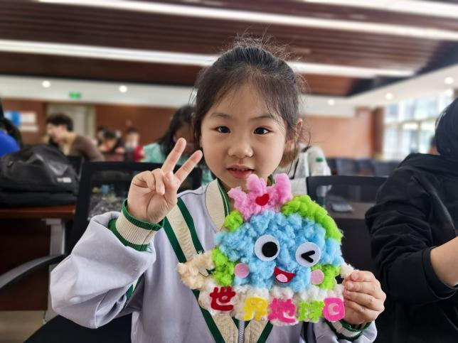当一个个色彩鲜艳、造型可爱的地球挂饰完成时,孩子们脸上洋溢着自豪的笑容,纷纷举起自己的作品合影留念,定格下这份属于环保与成长的美好瞬间。